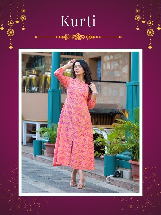 New 60% OFFRayon viscose Pink printed flared kurti